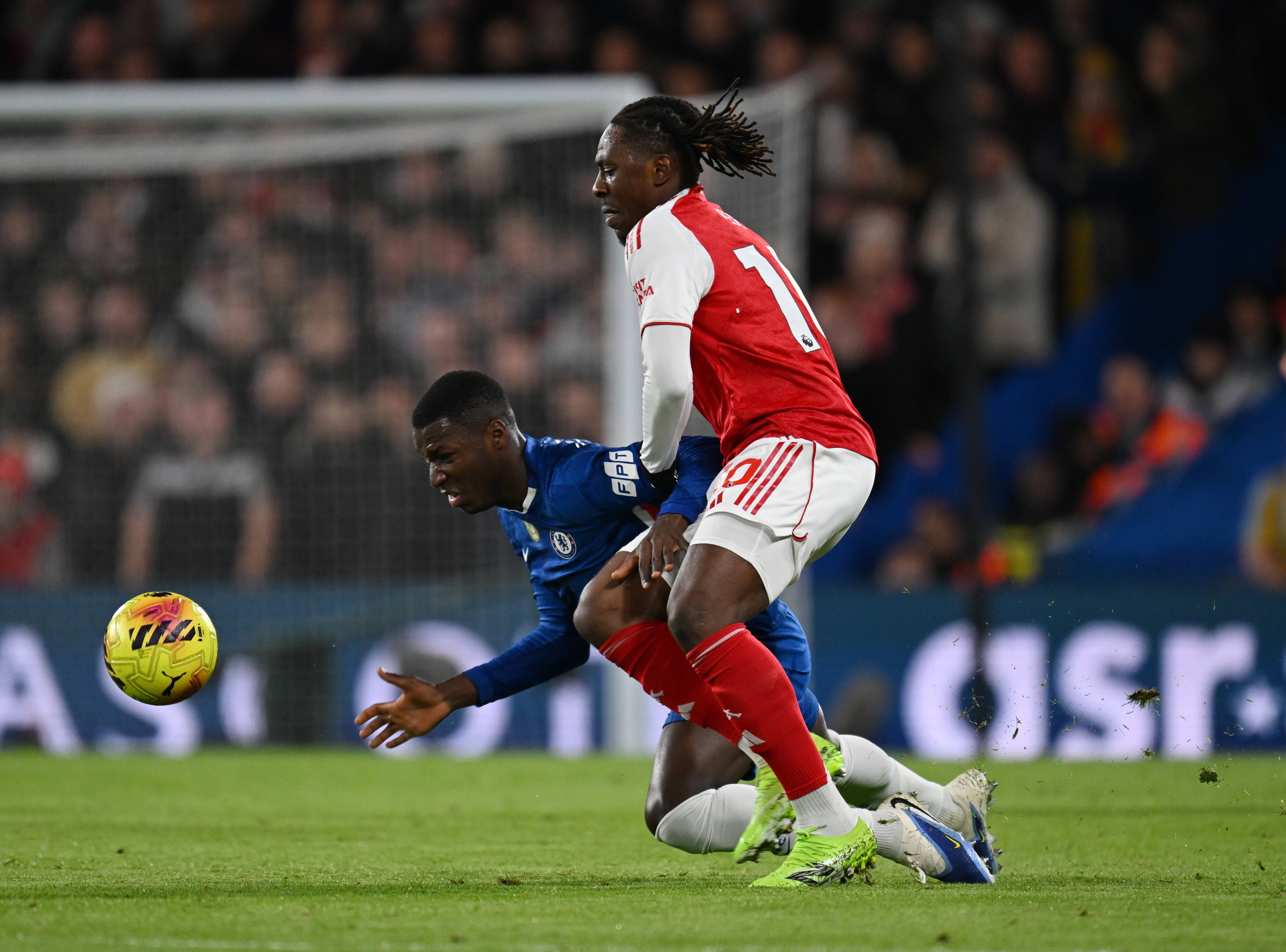 11月30日,切尔西队球员凯塞多(左)与阿森纳队球员埃泽拼抢。 新华社/欧新