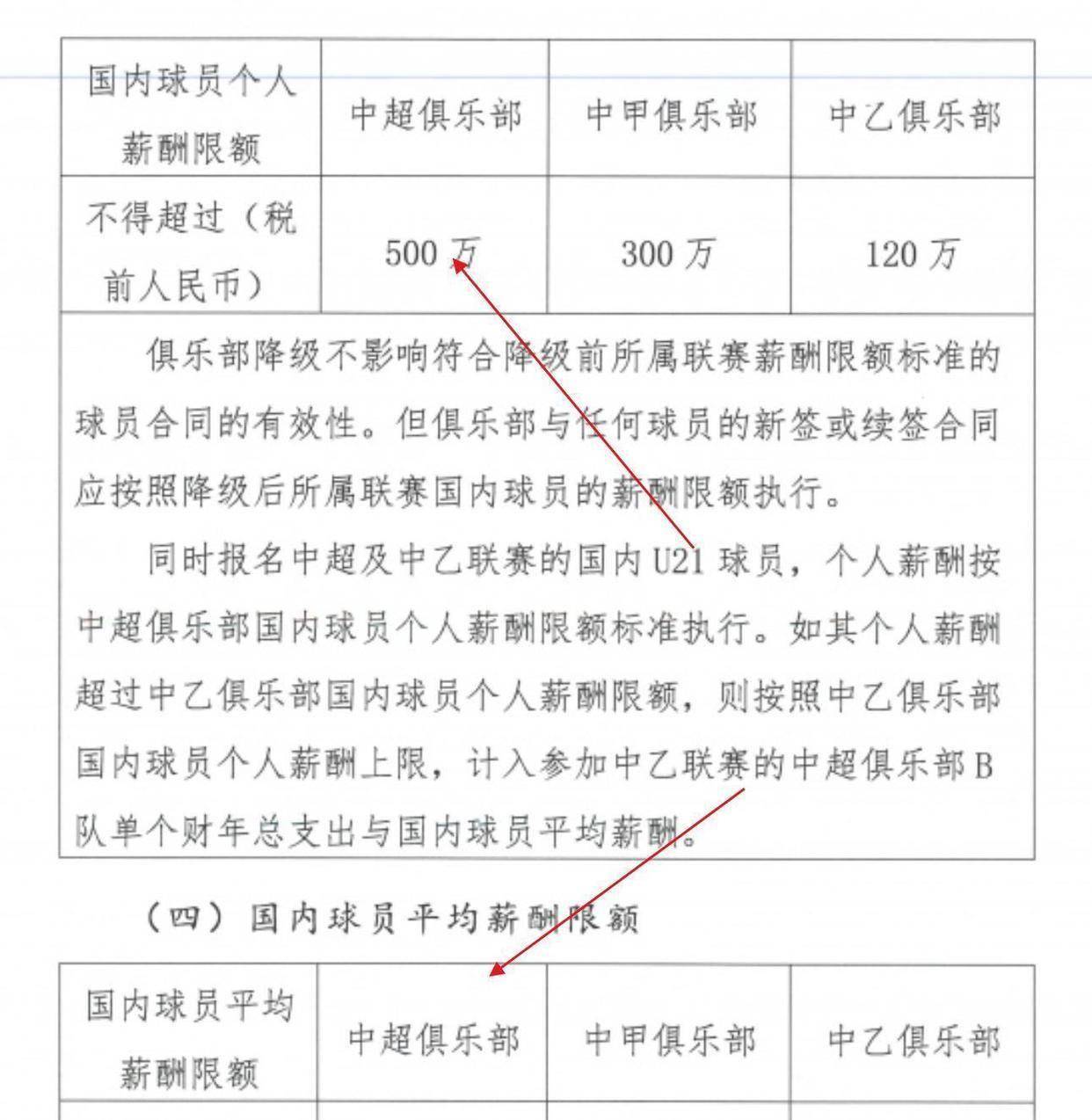 根据规定,中超俱乐部单个财政年度总支出不得超过6亿元人民幣。本土球员单赛季薪酬不得超过税前500万元人民币,全队本土球员平均年薪不得超过税前300万元人民币。