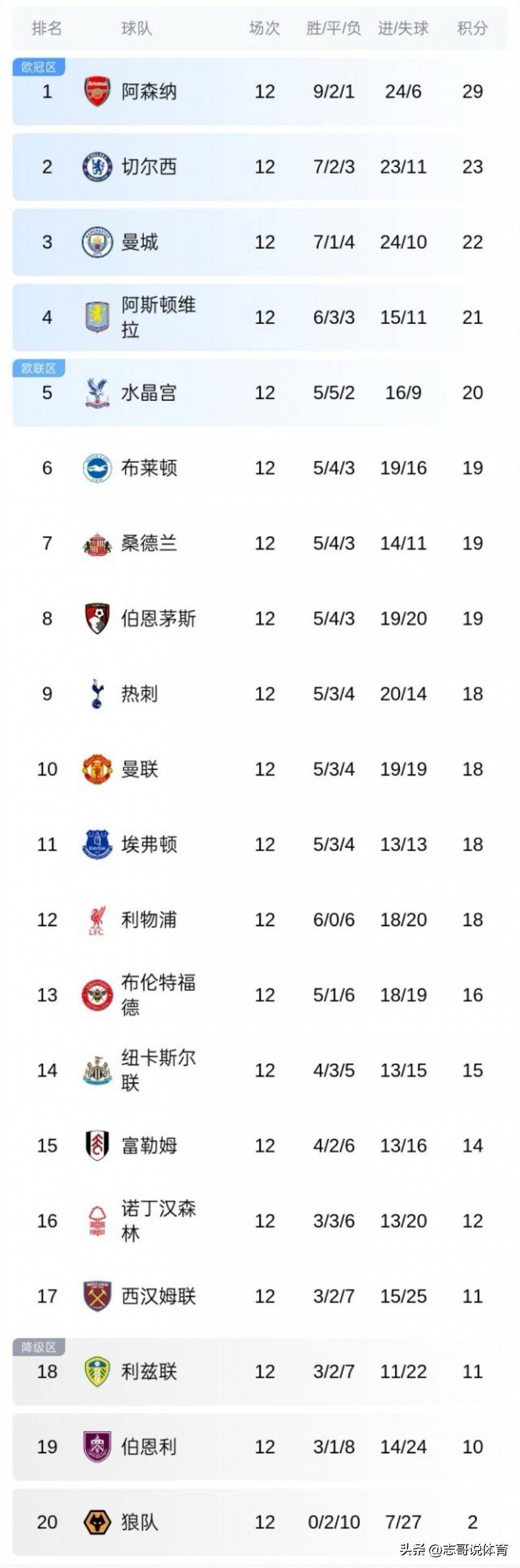 从英超最新积分榜来看,输球的曼联队仍然排名第10位、埃弗顿队则是升至第11位、利物浦队跌至第12位,热刺、曼联、埃弗顿、利物浦4队都是18分。阿森纳29分排名第1位、领先第二名的切尔西6分,曼城、维拉分列第3位和第4位。曼联英超埃弗顿阿森纳[超话]返回搜狐,查看更多