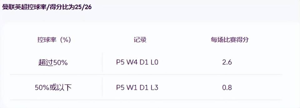 曼联近期状态回升,其核心在于球队能够有效地简化球员在反击体系中的角色分工,从而诱使对手占据更多的控球权。本赛季,曼联在控球率低于或等于对手的四场比赛中取得了13分,而当他们掌控球权优势的五场比赛中,仅仅得到4分。