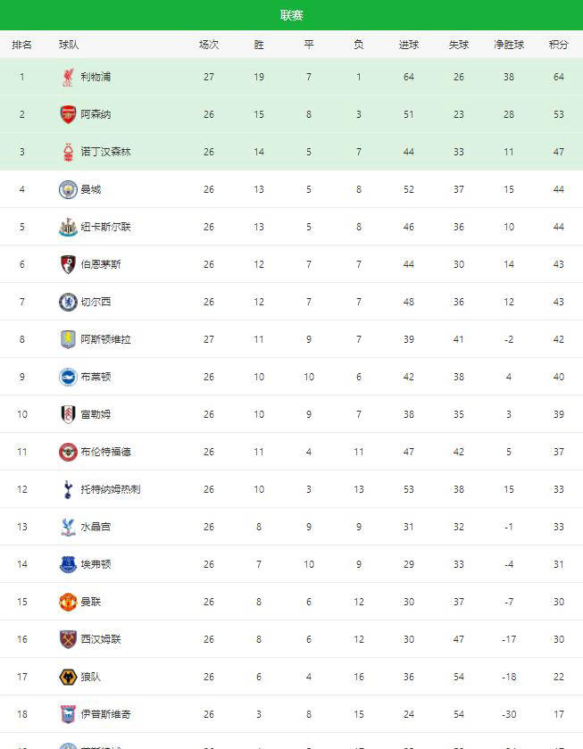 进入争冠主题,利物浦在新任教练斯洛特的带领下表现出色,自赛季初便稳居榜首,并在与曼城的直接对线获胜,展现了强大的统治力。他们已经保持21轮不败,目前领先第二名阿森纳达11分,正朝着俱乐部历史上的第二座英超冠军迈进。