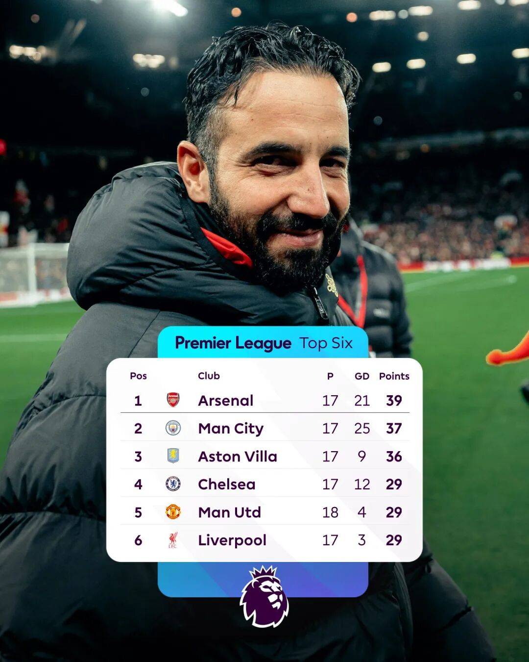 目前,曼联以8胜5平5负的成绩位列英超积分榜的第5位,29分的积分也追平了少赛一场的切尔西和利物浦。返回搜狐,查看更多