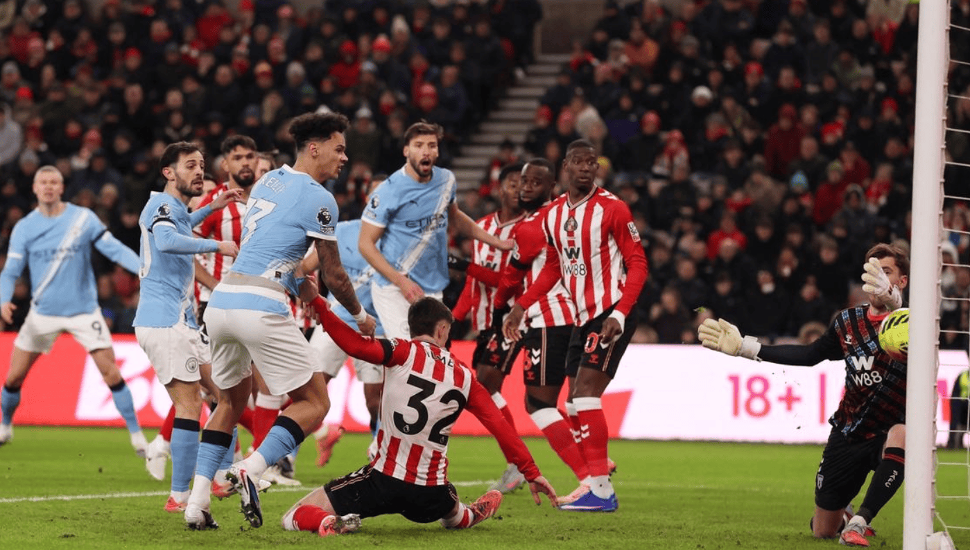 曼城也是踢出了0-0的比分。曼城做客挑战升班马球队桑德兰。上半场的曼城踢得很差,只有2次射门,创造出的好机会比桑德兰少得多。幸好多纳鲁马表现出色,才让曼城没有率先丢球。下半场曼城不断加强攻势,机会很多。但是,缺少了一点运气。萨维尼奥、格瓦迪奥尔、多库和福登等人的射门都没有打进。其中格瓦迪奥尔的射门被立柱拒绝,最为可惜。曼城下半场狂射12次,一无所获。曼城各项赛事8连胜被终结,与阿森纳的差距拉大了。